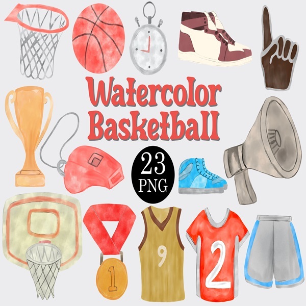 Watercolor Basketball Clipart Set