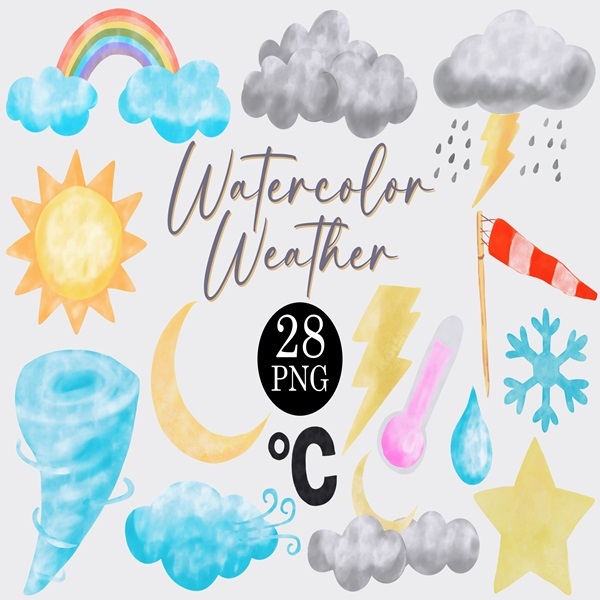 Watercolor Weather Clipart Set