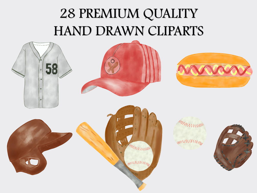 This bundle includes 28 unique Baseball clipart in PNG format with transparent backgrounds, making it easy to add them to your designs without any hassle. The files are high resolution, so you can scale them up or down without losing quality.